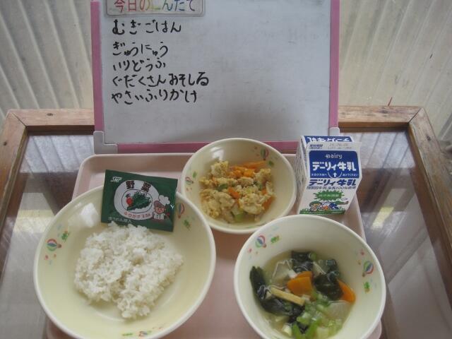 たくさん動いてお腹が空いたので、給食が待ち遠しかったようです。