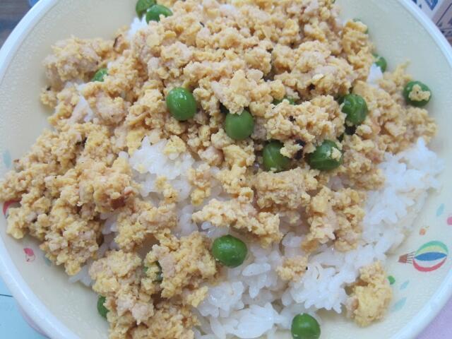 今日は、見た目が綺麗な三色丼でした。甘い味付けの卵で、ご飯が進みました。