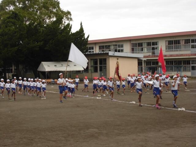 急な予定変更で本日予行練習を実施しました。朝登校した児童が進んでライン引きや小石拾い、用具の準備、机・いす運びなど取り組みました。さすが広っ子、日頃のハッピー活動の成果が見られた始業前でした。午前9時に開会式スタート、「1・2」「1・2」と元気よく行進しました。人の話を聞く態度も立派でした。一部を除いてプログラムを完了、今日は白が優勝、赤が応援賞でした。これは予行練習です。本番ではどうなるか楽しみです。