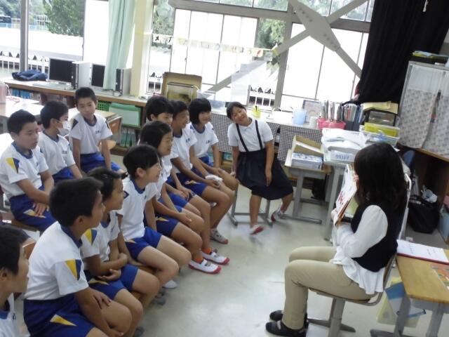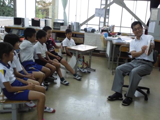 毎月、子どもたちに対して、読み聞かせグループ「ぽぽんたの会」による読み聞かせと学校職員による読み聞かせを行っています。今日は職員による読み聞かせです。学級担任だけでなく、校長をはじめ全職員で取り組んでいます。日頃接する機会の少ない職員が読み聞かせを行うことで、新鮮さがあり、子どもたちも興味津々で聞いてくれています。授業前のほのぼのとした時間を子どもたちと職員で過ごす貴重な機会となっています。