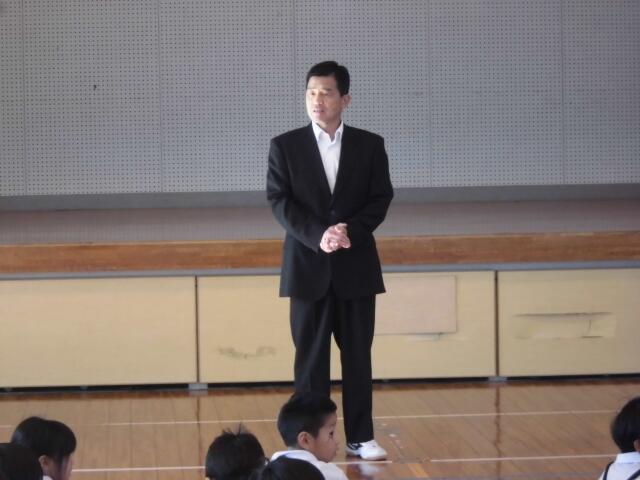 早いもので今日から10月、今年度も半分終わりました。今日は全校朝会で今月の月目標のお話がありました。今月の目標は「目を大切にしよう」です。4年生以上の保健給食委員会の児童と養護教諭の岩井先生が本を読む姿勢や勉強する姿勢など、悪い例を交えながら全校児童に実践内容を伝えていました。また、5月に行われた新体力テストで体力賞(判定A)の児童の表彰もありました。代表で6年生の久保宮未悠さんが証書を受け取りました。