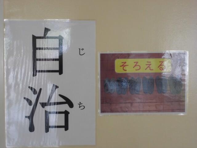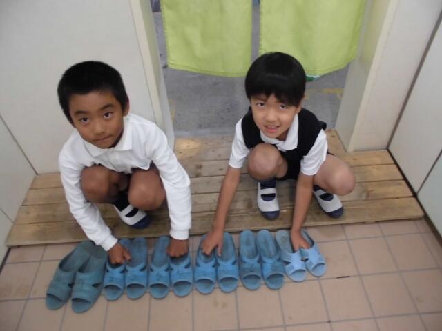 児童トイレの壁に大きく「自治」と大きな掲示があります。自治とは、それぞれの組織内部のことを自らの判断と責任において問題を処理していくこと(広辞林)です。つまり、トイレのスリッパを子どもたちの力できれいに並べていくということです。給食前に下足室辺りで給食指導をしていると、偶然にも2年生の2名の男子がきれいにスリッパを並べているのを発見しました。人が見ている見ていないに関わらず、このような行動ができることはすばらしいことです。こんなすばらしい行動がすべての子どもたちに広がっていくことを願っています。