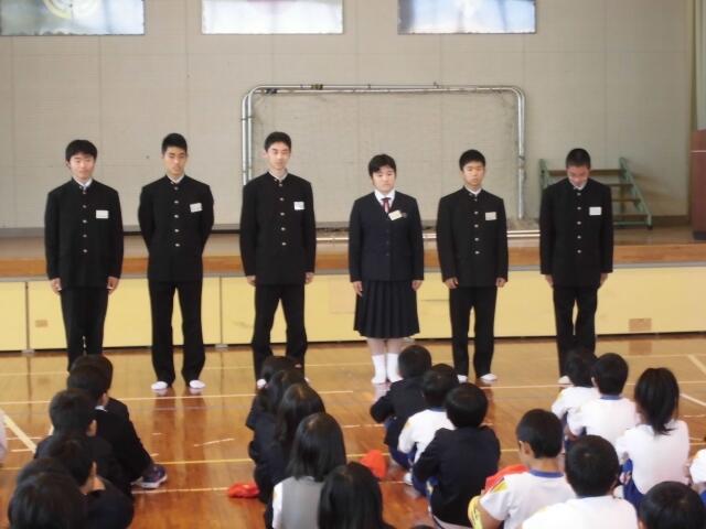 昨日から今日まで2日間、小林高校生徒6名が職場体験に来ました。1~5年生に1~2名ずつ配置され(6年生は修学旅行のため未配置)、子どもたちと遊んだり、一緒に勉強したりしました。子どもたちは、人見知りをすることもなく、しぜんと高校生のお兄ちゃん、お姉ちゃんと楽しく過ごしていました。最後のあいさつで「僕は小学校の教師になります。」と力強く宣言した生徒もいました。この2日間の広原小の子どもたちとのふれあいが、彼の人生の大きな転機になったのかもしれないと思います。がんばれ6人の小林高校生!