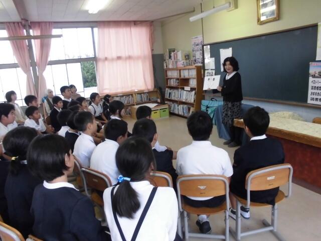低学年・中学年・高学年の3つに分かれて読書祭が実施されました。読み書かせグループ「ぽぽんたの会」「子うさぎ文庫」「くすのき文庫」の3つの団体からたくさんの方に来ていただき、読み聞かせやパネルシアターなどをしていただきました。臨場感あふれる朗読や登場人物の心の様子の伝え方など、子どもたちは語り部の方の豊かな表現に触れ、今後一層、読書に親しもうという気持ちをもったと思います。この活動は10年以上前から本校で取り組まれている活動だそうです。地域の様々な方々に支えられて、子どもたちの豊かな心は育っていくことでしょう。