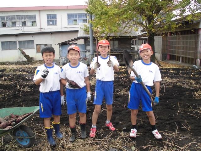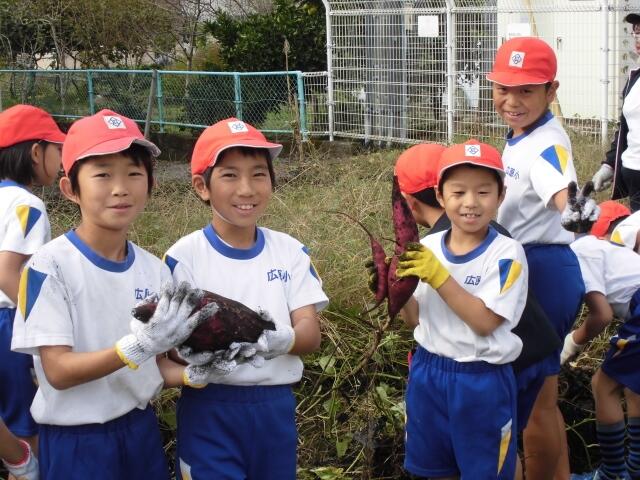 特色ある教育活動の1つである「広っ子タイム」が業間に実施されました。異学年のグループで、それぞれのグループの上級生が工夫を凝らした遊びを考え、学年に関係なく楽しく交流していました。また、3・4校時に中学年が芋ほりに取り組みました。たくさんの収穫にみんな笑顔でした。もちつき大会や家での食事でどんな料理ができるでしょうか。