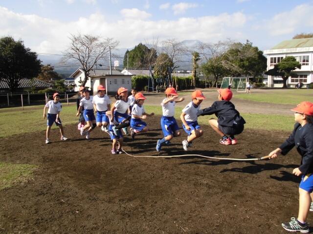 12月6日(日)の持久走大会に向けて、全校児童で持久走練習に取り組んでいます。業間の15分間、自分のペースで長い時間走り続けています。今日は、最近の中では、暖かく気持ちのよい気候でした。霧島山を背景に子どもたちのがんばっている姿が見られた持久走練習でした。