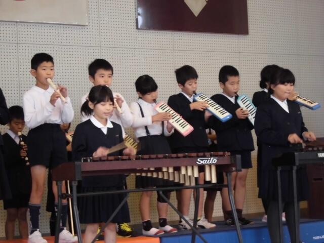 今日は西諸音楽大会本番です。朝、少々緊張した表情でバスに乗り込んでいました。発表本番では、表情豊かに元気良く堂々とした発表ができたようです。舞台背景の色と紺色の制服の組み合わせで、子どもたちが、とても凛々しく感じます。これまでの練習、そして本番、本当によくがんばりました。