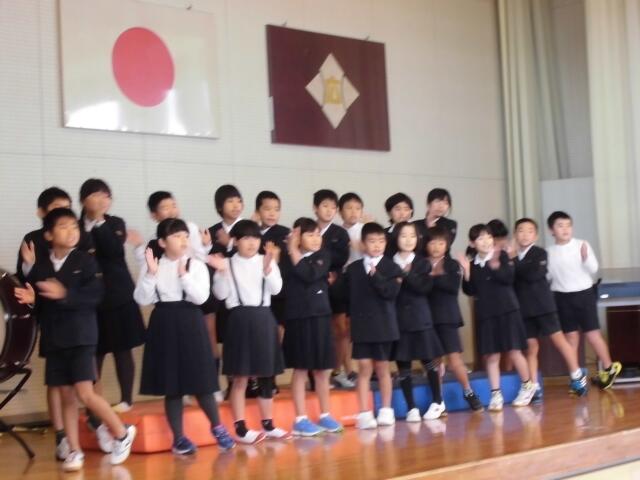 明日の西諸音楽大会に向けて、3・4年生の発表リハーサルが音楽集会時にありました。合奏と合唱それぞれ1曲ずつ、合唱は途中動きも入り、見ている人を楽しませる内容です。発表後に、聞いた3・4年生以外の児童の感想は「大きな声で歌っていました。」「リズムもよくすばらしい発表でした。」など、たくさんの感想が聞けました。最後に、「音楽大会、がんばってください。」と3・4年生に激励のメッセージを送りました。明日は、広小代表として立派な発表ができることでしょう。