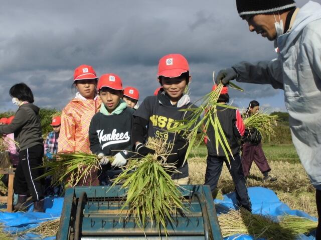 最近では最も寒い日でした。天候も心配されましたが、無事、稲刈り・脱穀ができました。6つの広っ子チームで上級生が下級生のお世話をし、協力して取り組めました。あまり使うことのない鎌や千歯こきを上手に使い、一人のけが人も出ませんでした。私自身、稲刈りも脱穀も初めての経験で、子どもたちの上手な手さばきにびっくりしました。軽トラに積んだ収穫した米を見て、再度びっくり、大豊作です。これまで水の管理、雑草の除草、大型農機など、PTA事業部の方々、広原営農組合の方々には大変お世話になりました。ありがとうございました。