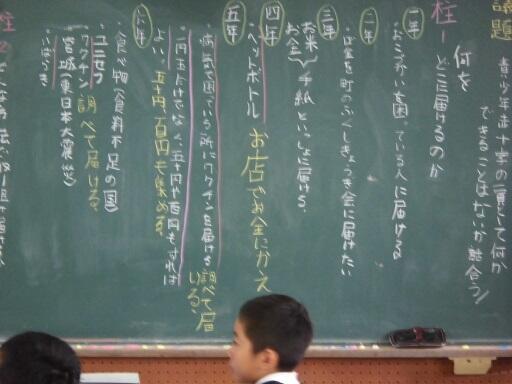 6校時に代表委員会がありました。この代表委員会は年間7回計画され、その時期に応じて話し合いを行います。4~6年生の学級代表2名、各委員会の代表1名、運営委員会の部員が参加します。今日の議題は「青少年赤十字の一員として何ができるか」でした。「先日収穫した広っ子米を自然災害等で被災に遭った地域に送ろう」や「募金活動をしよう」など、いろんな意見が出ました。これから様々な意見を集約し、子どもたちの活動として意義あるものに取り組んでいきたいと思います。