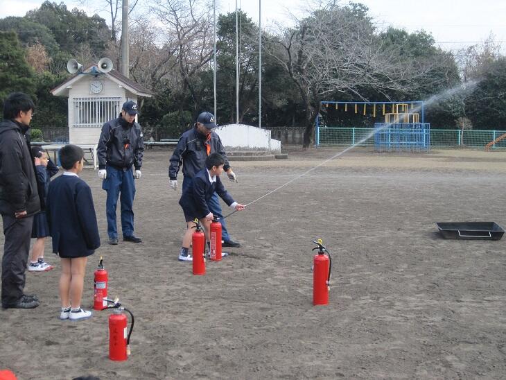 「家庭科室から出火し、火事になった。」という想定で避難訓練を実施しました。全校児童76人が静かに整然と避難できました。昨年の11月に都城市の火事で4人の尊い命が奪われた事故の話や宮崎県の1年間の火災とその死者の数の話から、この避難訓練は「命を守る学習である。」ということを話しました。その後、高原分遣所の方から、消火器の使い方や消化の仕方を教えてもらいました。大変寒い午後でしたが、子どもたちは話をしっかりと聞き、火事の怖さや命の尊さを学んだようです。