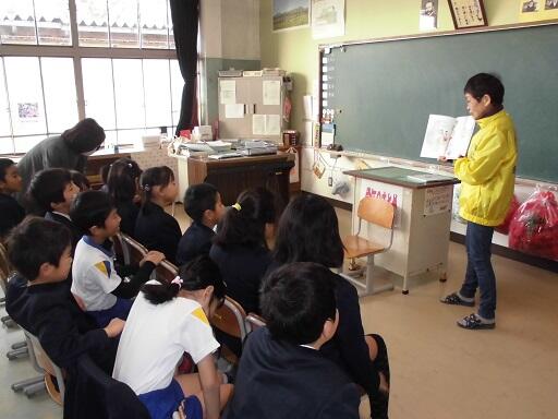本年度最後の読み聞かせがありました。新しい校時程の施行期間ということで、通常より20分早い8時に始まりました。6年生の教室では、読み聞かせ「ぽぽんたの会」の亀沢さんが「6年生は1年生からの読み聞かせでおよそ350冊読んだことになります。」というお話をされました。積み重ねと継続することの大切さを感じました。読み聞かせが終わり、各教室では寄せ書きの色紙とダリアの鉢を「ぽぽんたの会」の皆さんにお礼の気持ちを込めてプレゼントしました。この読み聞かせで、子どもたちの心は豊かになり、落ち着いた雰囲気で学習を始めることができます。読み聞かせ「ぽぽんたの会」の皆様には大変お世話になりました。「ありがとうございました。」また、次年度もよろしくお願いします。