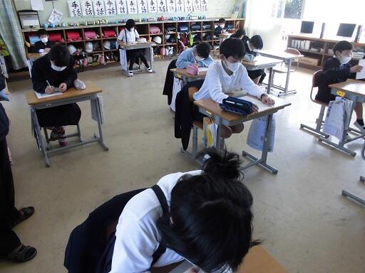 昨日、今日は業間の時間を使って、「わくわくチャレンジ」を実施しました。これは、その学年の漢字や計算がどれだけ身に付いているかを自分自身で確かめるとともに、今後の取組への意欲付けをするねらいがあります。3・4年生の様子を見に行きましたが、みんな黙々と問題に取り組んでいました。現在、どの学年も復習の学習をしています。現在の学年の学習内容を理解させた上で、次の学年に進級させます。