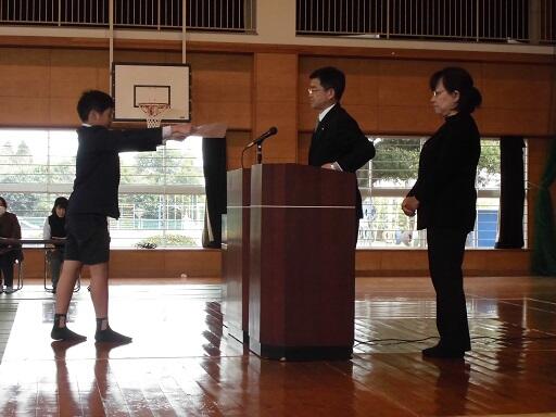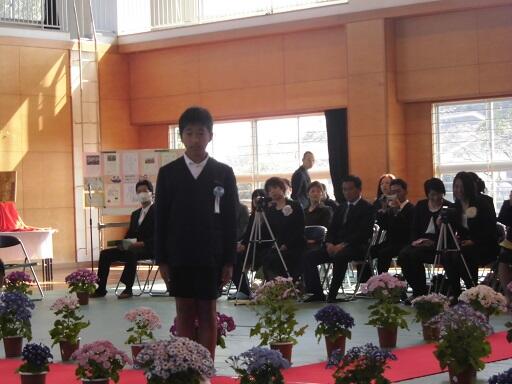 平成27年度最後の授業日でした。1校時に修了式があり、5年生の福永太陽君、1年生の上岡美咲さんが発表しました。福永太陽君は、本年度の反省のもとに、6年生で「少年団活動と勉強の両立」と「広っ子ハッピー活動への積極的な参加」の2つをがんばっていくこと発表しました。1年生の上岡美咲さんは、1年生でできるようになったこと、「こま回し」「友達にやさしくできた」「給食を時間内に食べられるようになった」の3つを発表しました。2人ともみんなの前で堂々と発表できました。