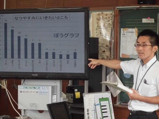 本校は、昨年度より3年間、宮崎県統計教育推進校に指定されており、全校児童で統計作品コンクールに作品を出品しています。夏休みの自由研究で取り組むことになっていますが、下学年の児童にとっては難しい課題なのかもしれません。そこで、本日、県庁の統計調査課の職員2名が来校され、子どもたちに「どのように作ればいいのか。」「テーマは何がいいのか。」など、具体的に説明してくださいました。子どもたちは真剣に話を聞き、作品作りへの関心が高まっているようでした。作成には保護者の皆様のご協力が必要な場合があると思います。詳しいことは、6日の参観日、学級懇談で担任より説明があります。