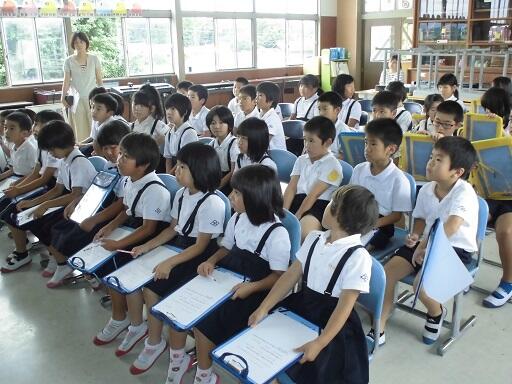 暑い日が続いています。今日は参観日、平日の午前中にもかかわらず、たくさんの保護者の皆様に学校に来ていただき、ありがとうございました。今月の参観日はテーマが「人権学習」でした。それぞれの学年の発達段階に合わせて授業内容が工夫されていました。1年生では、ロールプレイ(役割演技)で、それぞれの気持ちを考えました。4年生では日頃使っている言葉を二種類に分け、その言葉をかけられるとどんな気持ちになるかを考えました。校内には、子どもたちの言葉遣いの啓発のために「やさしい言葉でホタルを光らせよう。」という掲示物が貼ってあります。うれしい言葉ややさしい言葉が今以上にいっぱいの学校になるといいですね。