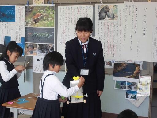 昨年に引き続き、今年も小林高校生が職場体験に来ました。今年は2名の参加です。1~4年生の子どもたちと2日間交流します。今日は1年生と2年生の教室に入り、授業や昼休み、清掃活動を一緒に取り組みました。はじめは、初対面の子どもたちを前に緊張気味の様子でしたが次第に緊張もほぐれ笑顔で交流していました。子どもたちもお姉さんたちに積極的に話しかけ楽しそうに活動していました。明日は遠足、3年生と4年生を中心に交流します。