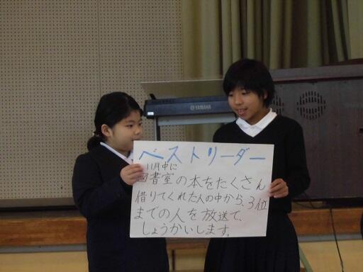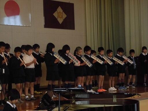 今日は全校集会と音楽集会を合わせて1校時に実施しました。今月の月目標「いろいろな本に親しもう」について、図書委員会の子どもたちが発表をしました。その後、3年生が今月末の西諸音楽大会の発表内容を披露しました。