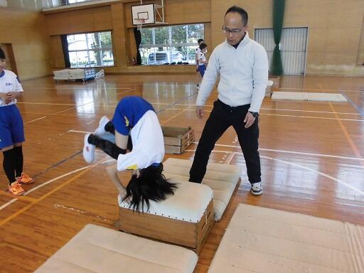 春の訪れを感じさせる陽気のもと、2・5年生が体育の授業に取り組んでいました。2年生はゴール型ゲーム(サッカー)、5年生は器械運動(跳び箱)です。2年生は6人という少人数ですが、先生も一緒にボールを蹴ってゴールに見立てたハードルに蹴りこんでいました。5年生は跳び箱を使って台上前転、跳び箱から落ちるかもしれない恐怖心との葛藤の中、目標をもって取り組んでいました。天気予報によると、明日から寒波が来て、一層寒くなるようです。体力の向上は病気の予防の観点から大変重要です。十分な睡眠、適度な運動、正しい食生活を心がけたいです。