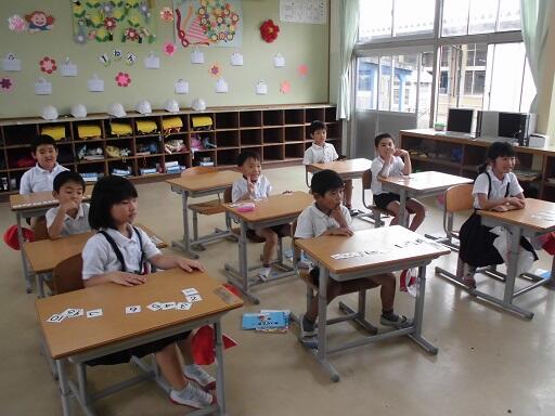 毎朝、1年生教室から元気な声が聞こえてきます。月の歌を9名の1年生と担任の永田先生が大きな声で歌っている声です。朝だけでなく授業中も子どもたちの元気な発表の声が響いています。今日の5校時は算数、「いくつと いくつ」の学習でした。「2と8で10」「6と4で10」など、永田先生の声に続いて大きな声で発表していました。10の合成・分解はこれからの算数の基礎基本となります。何回も声に出し、ノートに書くことでしっかり身に付きます。今後の子どもたちの学習が楽しみです。