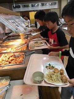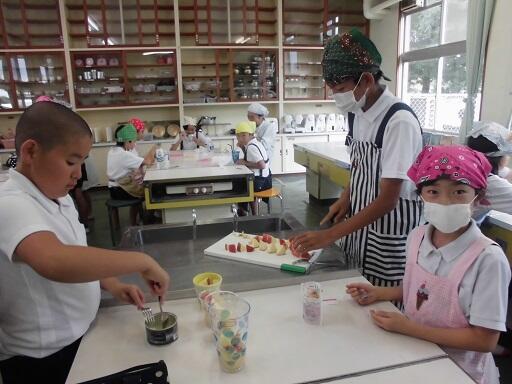学期に1回、2時間続きのロングクラブがあります。45分間の通常の時間ではできない内容を実施します。文化クラブは「フルーツサイダー」を作って食べていました。包丁を上手に使って果物の皮を丁寧にむいている姿も目にしました。運動クラブは、プールでの水遊びです。水泳学習ではなく、鬼ごっこなどのゲームです。とても気持ちよさそうに活動していました。どちらのクラブも子どもたちの楽しそうな笑顔がいっぱい見られました。