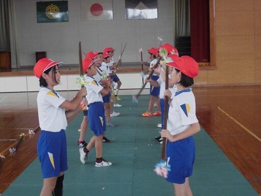 23日(日)の六月灯に向けて6年生がおよそ半年ぶりの棒踊りの練習に取り組みました。保存会の方3名の指導のもと、動きを思い出しながら踊りを舞っていました。本番までもう練習はありません。4日後に迫った六月灯本番では、見事な勇姿を見せてくれることでしょう。