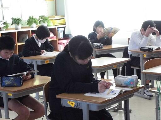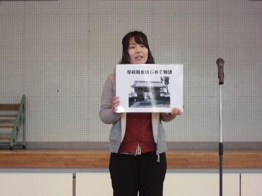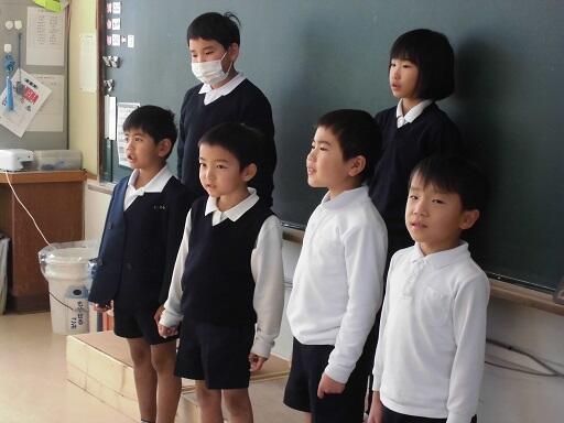 全校集会では、阪元校長先生が、自分の欠点を注意してくれる周りの人々に感謝することや今の学年の残りの期間、本当の友達を大切にして過ごすことを話しました。その後、片野坂先生から、風邪やインフルエンザ等の予防について、岩井先生から、月目標についての話がありました。