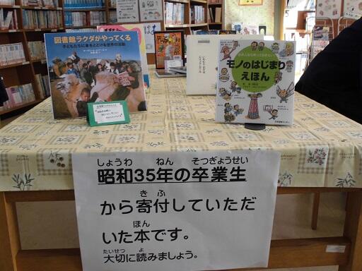 図書室に新しい本が届きました。これは、昭和35年卒業生の方々からいただいたものです。貸し出しに必要な準備も終わり、明日からいよいよ貸し出し開始です。子どもたちが、きらきら目を輝かせて本を楽しく読んでいる様子が目に浮かびそうです。図書の寄贈、ありがとうございました。