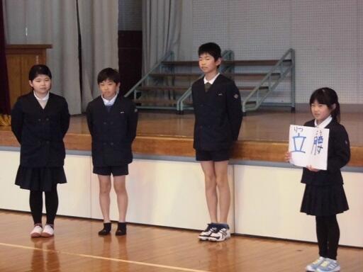 3月に入りました。今日の全校集会では、校長先生から、インドのお坊さんの昔話をもとに「掃除で場をきれいにすると同時に自分の心もきれいにすることが大切です。」と掃除の意義について話がありました。その後、恒吉先生と運営委員会の児童から、あいさつや掃除などのハッピー活動の大切さと活性化について話があり、残りの期間、みんなでがんばっていくことを確認しました。最後に「税に関する絵はがきコンクール」で奨励賞を受賞した6年生の真方優衣さんの表彰がありました。今の学年も残すところ3週間あまりです。有終の美を飾るためにも充実した一日一日になるようにしたいと思います。