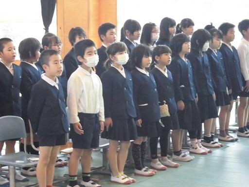 平成29年度最後の日です。1から5年生が修了式に臨みました。1年生は久保星翔君、2年生は荒殿叶和君、3年生は横山聖羅さん、4年生は東原陽那太君、5年生は町浦琉哉君がそれぞれの代表として修了証(通知表)を受け取りました。その後、校長先生から「残心」について話があり、今日の修了式になぞらえて、一つの動作(物事)を終えたあとでも緊張を持続することの大切さを話されました。代表児童の発表では、1年生の吉永恵俐奈さんが、1年生で漢字を覚えたことと、たし算ひき算ができるようになったこと、2年生でかけ算を覚えること、あいさつをがんばることを発表しました。4年生の黒田紗理さんが、西諸音楽大会とクラブや委員会活動でがんばったこと、5年生では下級生があこがれる上級生になることを発表しました。明日からは春休みです。命を守ることを最優先に有意義な休みになることを願っています。
