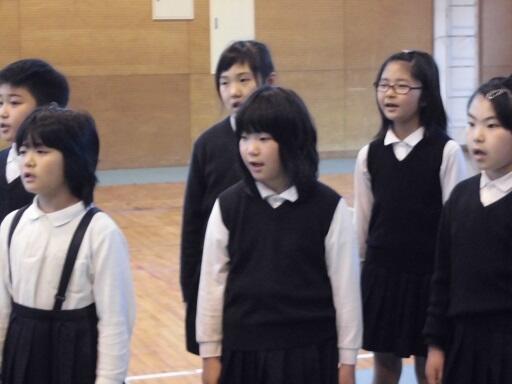 卒業式の別れの言葉で歌う在校生の「tomorrow」の練習をしました。音楽主任の山下先生が声の出し方や姿勢など具体的に教え、子どもたちも一生懸命に練習に取り組みました。卒業式本番できれいな歌声が響くことを期待しています。