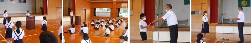 本日は1学期終業式でした。6年生、3年生の代表児童が1学期の振り返りの作文発表をしました。とても立派でした。また、青少年健全育成町民大会の意見発表、標語発表の表彰を行いました。6年生2名が堂々の表彰でした。素晴らしいです。明日から秋休みです。2学期もみんな元気に広原小を盛り上げていきましょう!