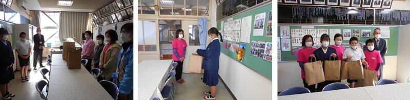 ほほえみ館、ヘルスメイトのみなさんに来校していただき、「おやこの食育教室」事業の一環として、子どもたちに手作りお菓子等をいただきました。コロナ禍でなければ実際に食育教室で調理等も行われる予定なのですが、本年度もできませんでした。6年生代表児童が受け取り、お礼もしっかり伝えることができました。