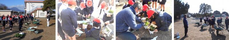一昨日、全校のみんなで「サイネリア」の植栽を行いました。一人一鉢で育てていきます。地域の方にご協力をいただき、植栽方法やお世話の仕方等を学びました。植栽する際には、6年生がリーダーとなって下学年のみんなの手伝いをしてくれました。このサイネリアの鉢は卒業式に飾りたいと考えています。全校のみんなで大事に育てていきたいと思います。