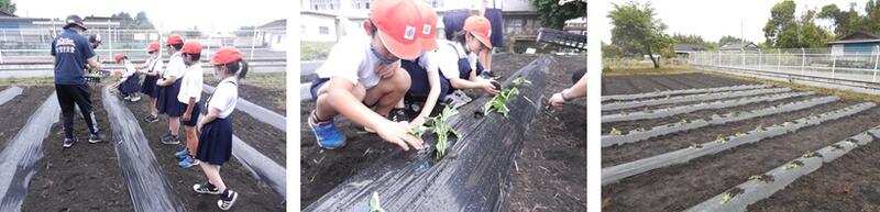 昨日、サツマイモの苗を植えました。今年は全学年行いました。時間をずらし、学年ごとに行いました。先日、地域の方々そして本校のPTA保護者の皆様より、畑を耕していただき、畝作りとマルチ張りもご協力いただきました。本当にありがとうございました。秋の収穫までしっかりお世話をして大事に育てていきたいと思います。