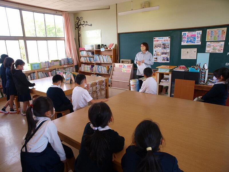 4月18日(火) 今日は、図書司書の先生が来られました。各学年の子どもたちに、図書室使用のきまりや、本の取り扱い方について指導してくださいました。指導の後、子どもたちは、好きな本を見つけて読んでいました。本年度もたくさん本を借りてほしいと思います。司書の先生に伺ったところ、子どもたちの間で人気が高いのは、動物の本やこわい話だそうです。高学年の女の子の間では恋愛物も人気があるとのことでした。