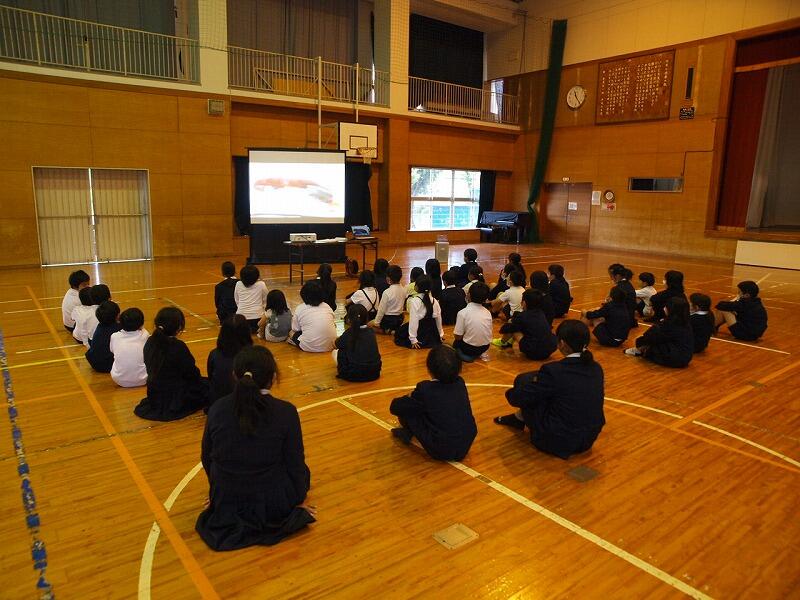 4月21日の4校時に、全校で防災学習がありました。風水害時における対応のしかたを、実際の避難の仕方を学びました。実際は、体育館で、地区ごとに整列し、運動場に迎えに来られた保護者に引き渡すまでの手順を、みんなで確認しました。今日は、訓練なので保護者の迎えはありませんでしたが、これから、梅雨時期になり、風雨が強くなることが考えられます。その後、風雨が強い場合の対応についてビデオで学習しました。