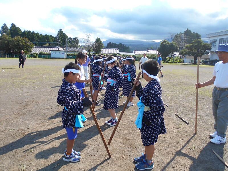 9月11日の棒踊りの練習は、運動場で衣装を着て行いました。日差しが暑い中、子どもたちは一所懸命、指導者の話を聞きながら練習を頑張っていました。今週末が運動会です。本番での発表が楽しみです。