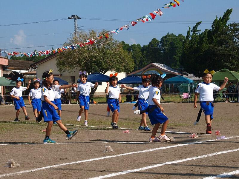 9月16日(土)、快晴の中、運動会がありました。暑さに負けず、子どもたちは徒走やリレー、綱引きなどがんばりました。応援では、団長を中心に子どもたちの大きな声援が運動場に響き渡っていました。1・2年生によるかわいい表現ダンスや、3年~6年による伝統芸能「棒踊り」は圧巻で、感動したといろんな方から感想をいただきました。