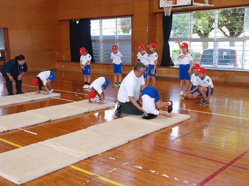 3・4年生は9月22日から10月6日まで、6回、小林高校の内ノ倉先生にきていただき、体育(マット運動)の指導をしていただきました。どちらかというとマット運動に苦手意識をもっていた子ども達も、回り方のこつを教えていただくことで、みんな、いろんな技ができるようになりました。できるようになった技を、何度も見せてくれました。みんな目が輝いていて、大変充実した6時間でした。内ノ倉先生ありがとうございました。