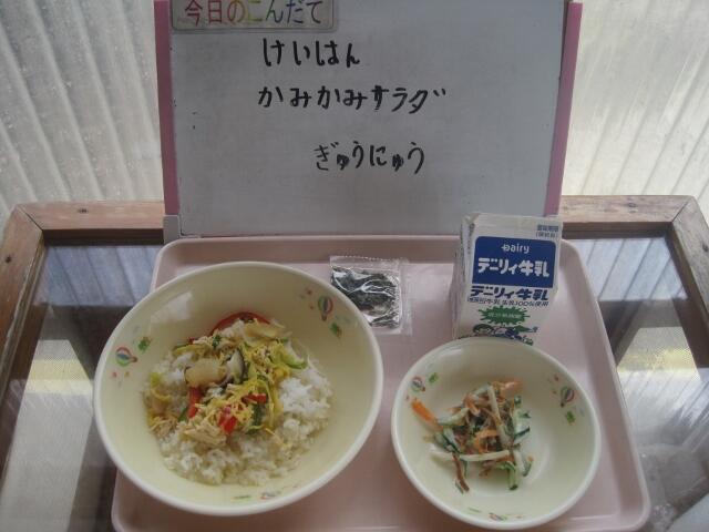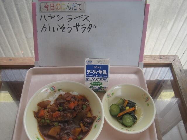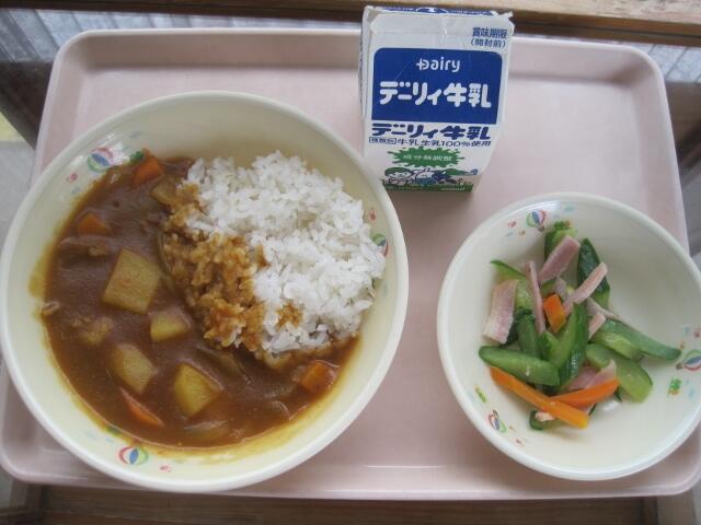 予行練習を頑張ったあとの給食は、ポークカレーでした。