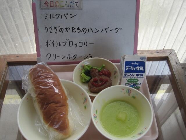 お月見うさぎにちなんで、ハンバーグがうさぎの形をしていました♪