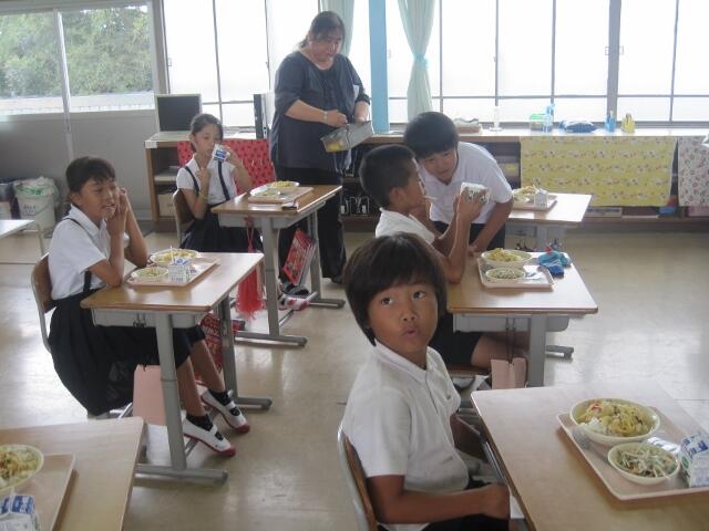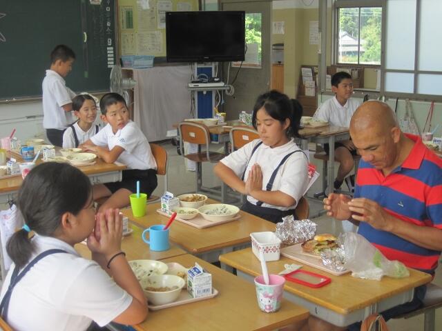 5年生は、ALTのジェフ先生と一緒に食べていました♪