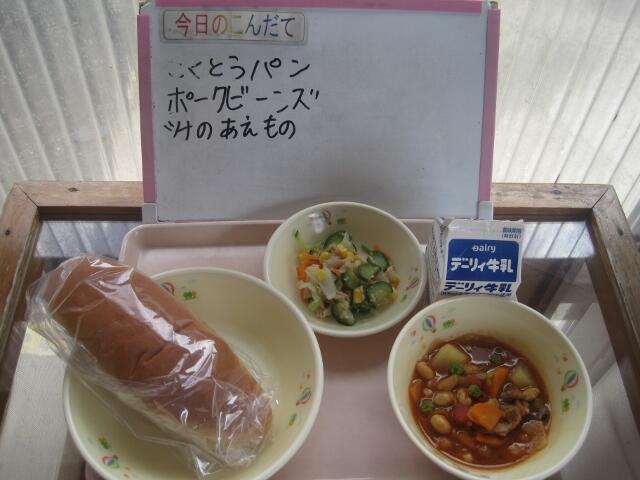今日は、いろいろな種類の豆が使われたポークビーンズでした。