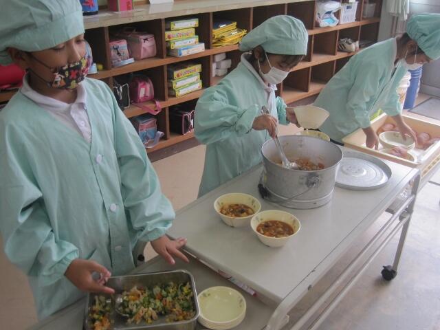 明日、24日(土)は運動会前日準備となっており、普段通り給食があります。