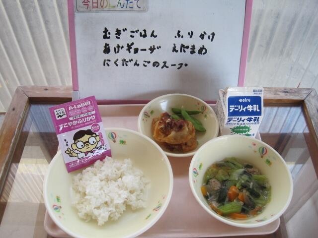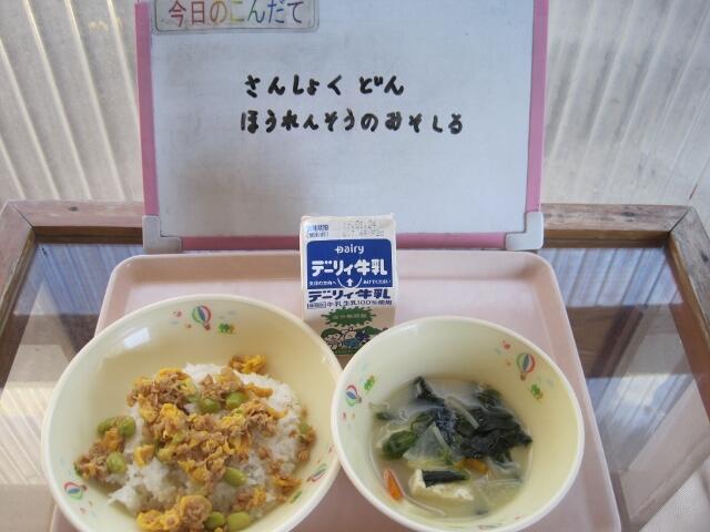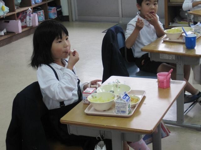 元気に活動して、給食時間にはお腹もペコペコな様子です。
