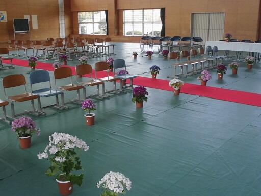 明日は入学式です。今日は準備に取り組みました。在校生が1年生に贈る「さんぽ」の合唱は、振り付けの練習でした。2~6年生が、とてもかわいらしく踊っていました。また、5・6校時は会場設営と清掃でした。体育館と1年教室設営、体育館及び校舎回りの清掃に4~6年生が取り組みました。きれいなサイネリアの花と色鮮やかな装飾物が設置された会場はとても華やかです。きっと1年生も喜んでくれることでしょう。