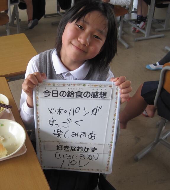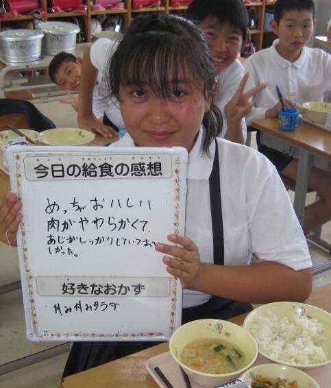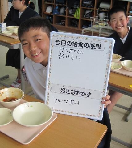 全校の皆さんに(先生たちも)1人ずつ、給食の感想と、好きなおかずを