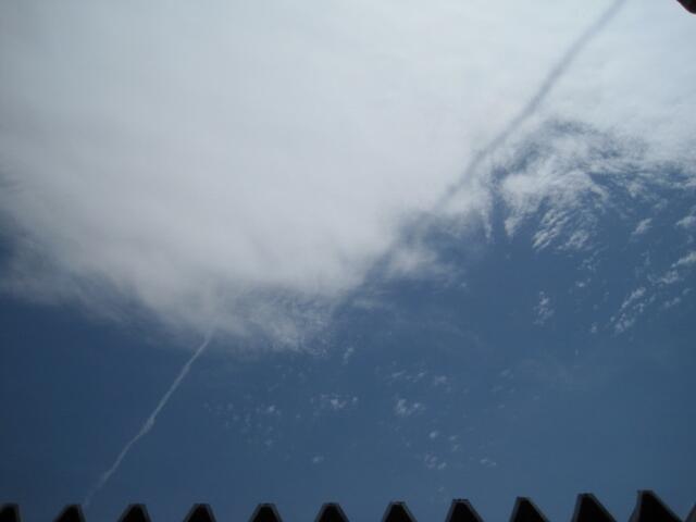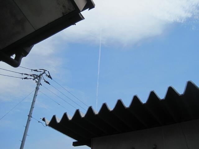 当番さんが給食室前に並んでいる時間にちょうど見えた飛行機雲です!