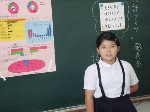 今日から9月。午前中は昨日より涼しく秋の気配を感じましたが、日中は厳しい暑さでした。今日の参観日は夏休みの研究(統計グラフ)の発表でした。授業開始日から1週間、発表の練習の成果が発揮され、全員立派に発表できました。また、聞く態度や質問の内容など、聞き手の態度も立派でした。暑い中、参観いただきありがとうございました。また、懇談後の九州PTA研究大会の発表プレゼンへの参加もありがとうございました。